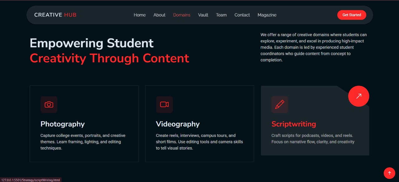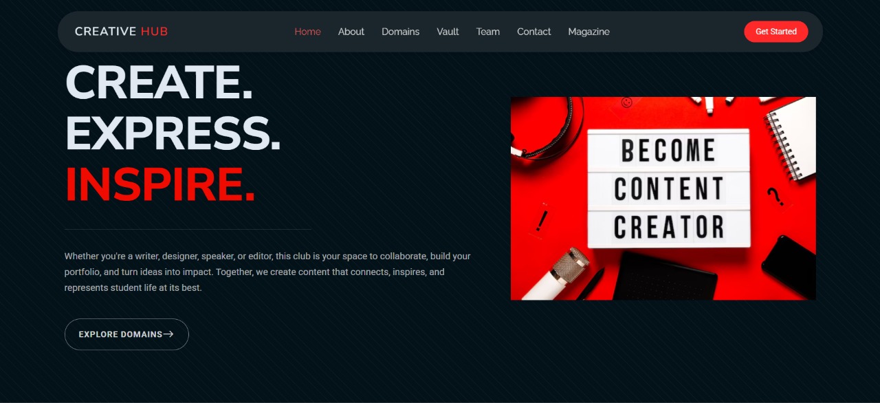 Designed a website for Content Creation Club in College -- Creative Hub